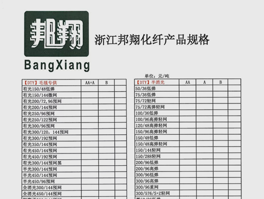 Zhejiang Bangxiang Holding Group Produktspecifikation Tabell-PRODUKTLISTA